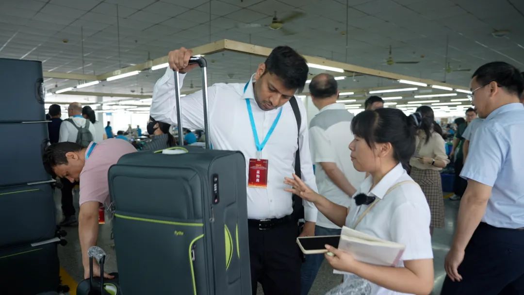 最早,當(dāng)?shù)刈龅氖遣剂喟?,用服裝廠的邊角料拼的。如今,產(chǎn)品已從最初的手提包、布袋,升級(jí)為拉桿箱、背包等。有的帶水杯架,甚至還能自己稱重、有充電USB接口……