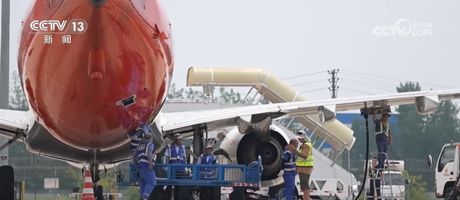 7月16日上午,成都市氣象臺發(fā)布了高溫紅色預(yù)警信號,多地最高氣溫超過40℃。在成都雙流國際機(jī)場的停機(jī)坪,地表溫度甚至逼近50℃。在這樣的酷熱中,為保障暑期客貨運(yùn)航班運(yùn)輸安全有序,機(jī)場一線的地勤人員頂著高溫堅守崗位,通過倒班協(xié)作,保障暑期運(yùn)輸。