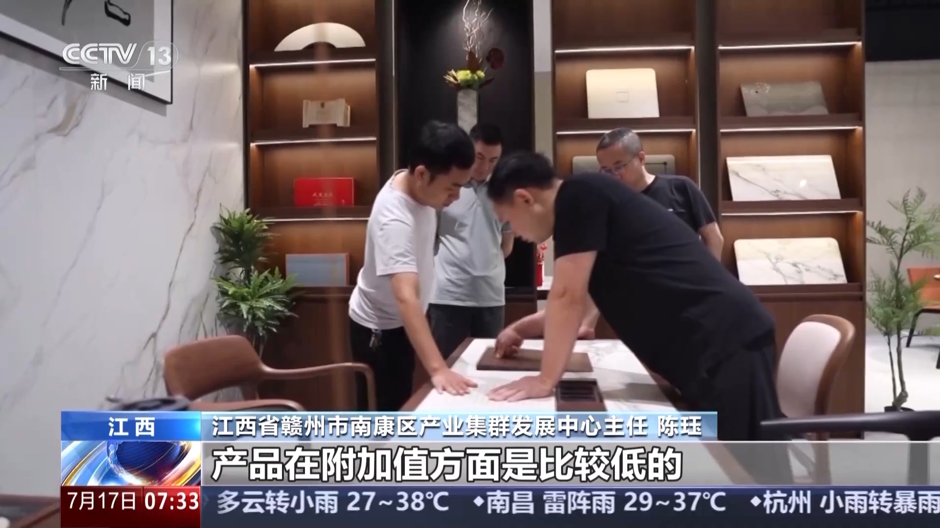 江西省贛州市南康區(qū)產(chǎn)業(yè)集群發(fā)展中心主任 陳玨:相較于生產(chǎn)的其他環(huán)節(jié),企業(yè)對于原創(chuàng)設(shè)計(jì)這方面的投入非常少,產(chǎn)品在附加值方面是比較低的。