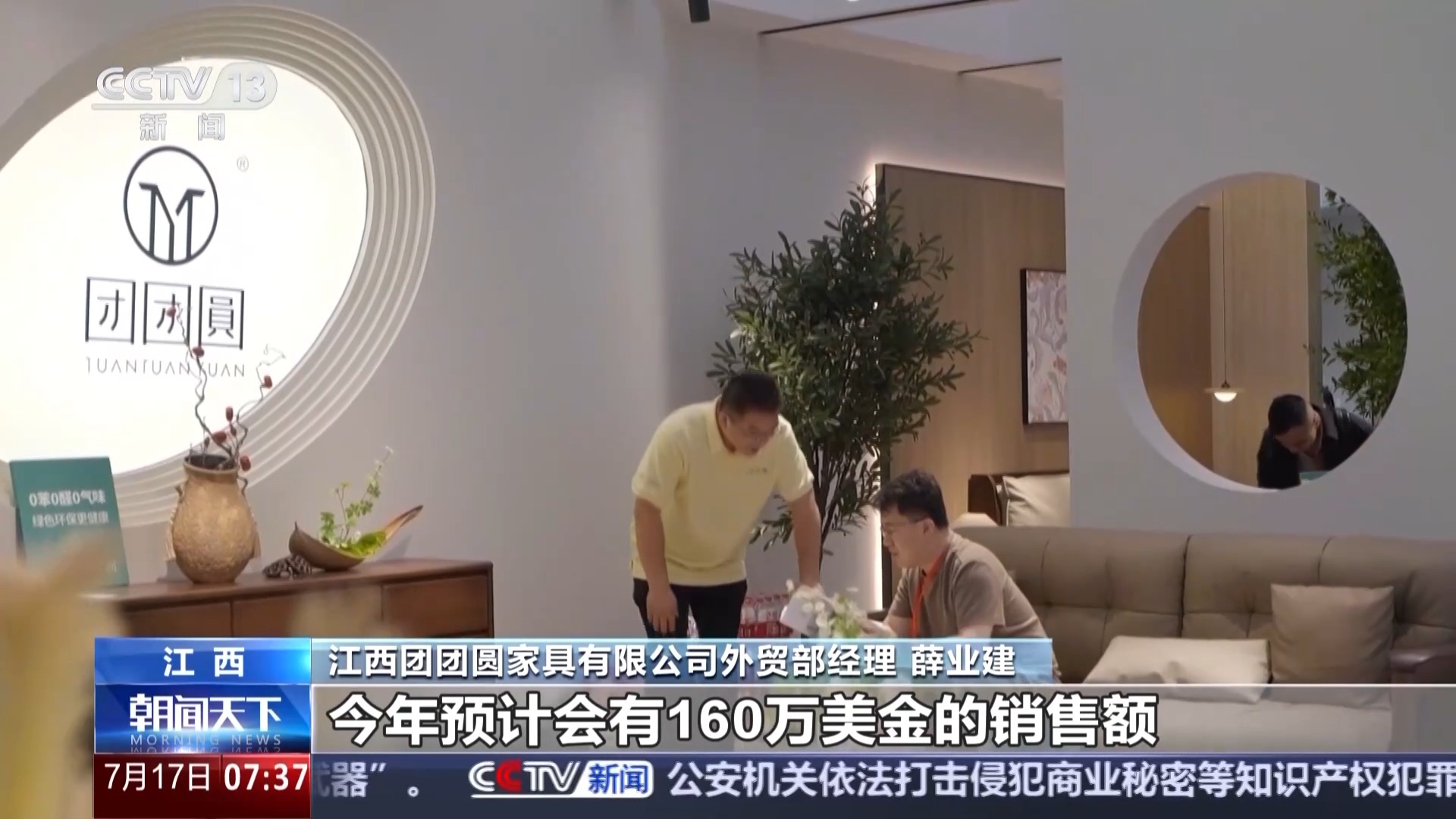 江西團(tuán)團(tuán)圓家具有限公司外貿(mào)部經(jīng)理 薛業(yè)建:家具在7月到11月是一個銷售旺季,今年預(yù)計(jì)會有160萬美元的銷售額。