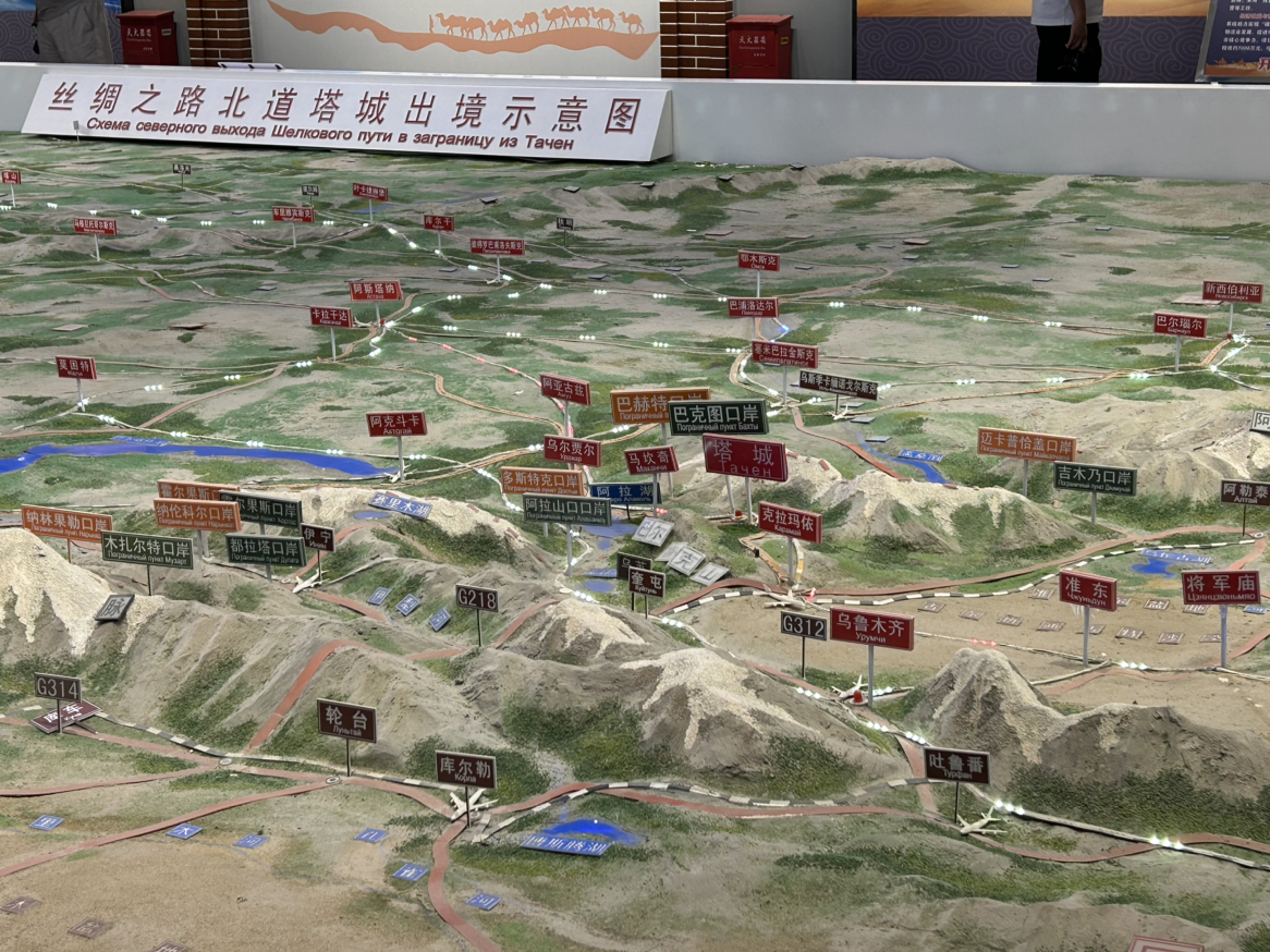 在巴克圖口岸文化展示館,解說員趙倩指著一張乾隆年間的易貨貿(mào)易圖介紹:“從1764年民間駝隊(duì)往來,到1854年正式通商,這里始終是亞歐大陸重要的貿(mào)易走廊?!别^內(nèi)沙盤清晰呈現(xiàn)“一核、兩廊、三區(qū)”新布局,2025年上半年數(shù)據(jù)顯示,口岸出入境人員同比增長167.82%,通關(guān)時(shí)間較往年縮短40%?!艾F(xiàn)在的司機(jī)用手機(jī)APP就能完成申報(bào),邊民互市‘整進(jìn)整出’模式讓貿(mào)易更高效。”趙倩說道。