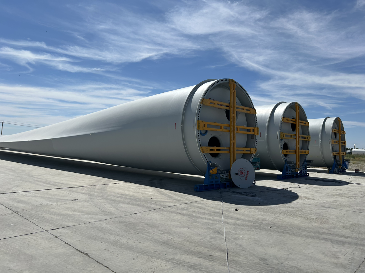 距口岸8公里的塔城重點(diǎn)開發(fā)開放試驗(yàn)區(qū)建設(shè)現(xiàn)場,三一風(fēng)電的巨型葉片正等待出口。“我們生產(chǎn)的葉片單只長度達(dá)112米,重達(dá)41噸,平均每80個(gè)工時(shí)可以生產(chǎn)一只,單只的成本價(jià)在120萬左右。目前,我們公司接收著來自世界各地的訂單” ,塔城風(fēng)電設(shè)備有限公司行政事務(wù)專員阿斯哈爾 阿根三一表示。