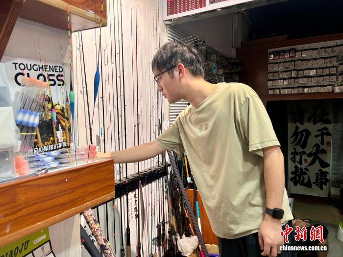 7月17日,顧客在江西省南昌市紅谷灘區(qū)一漁具店內(nèi)挑選漁具。朱瑩 攝