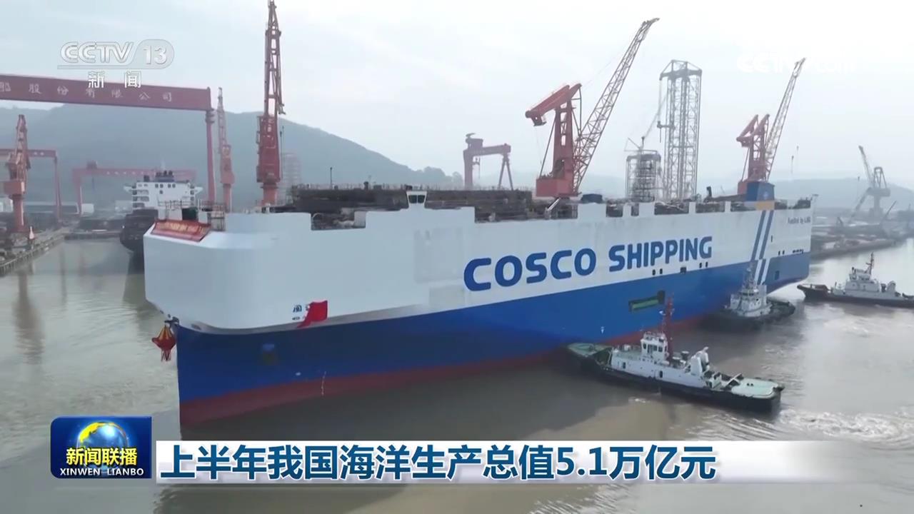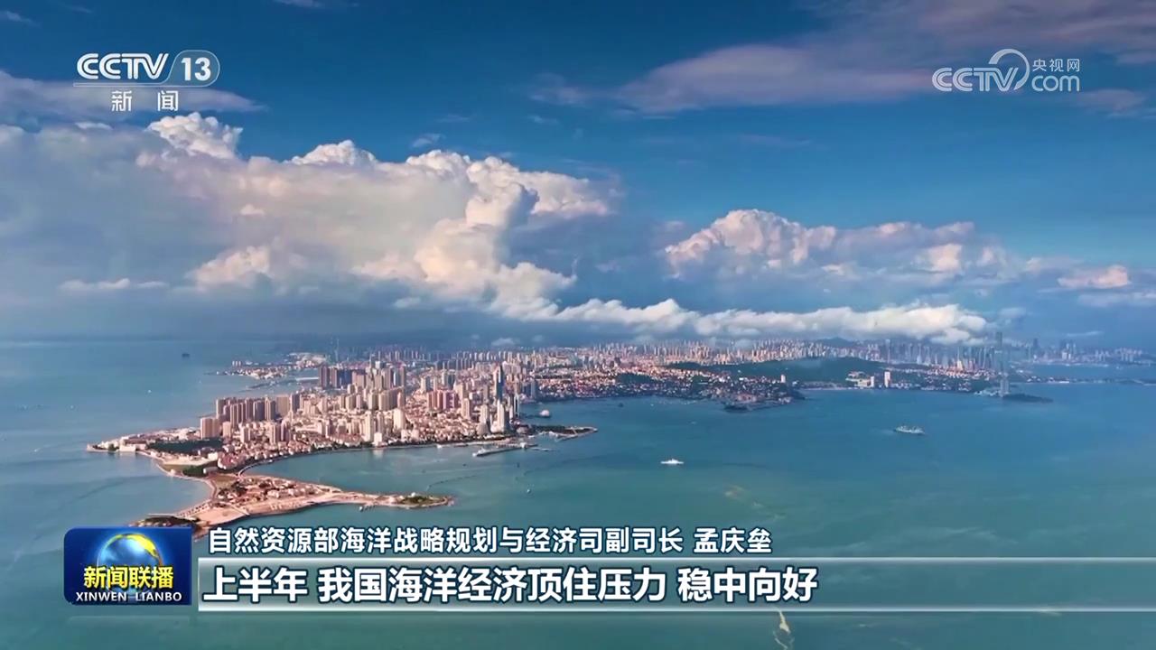央視網消息(新聞聯(lián)播):記者從自然資源部了解到,上半年,我國海洋經濟穩(wěn)中向好,初步核算,海洋生產總值5.1萬億元,同比增長5.8%。