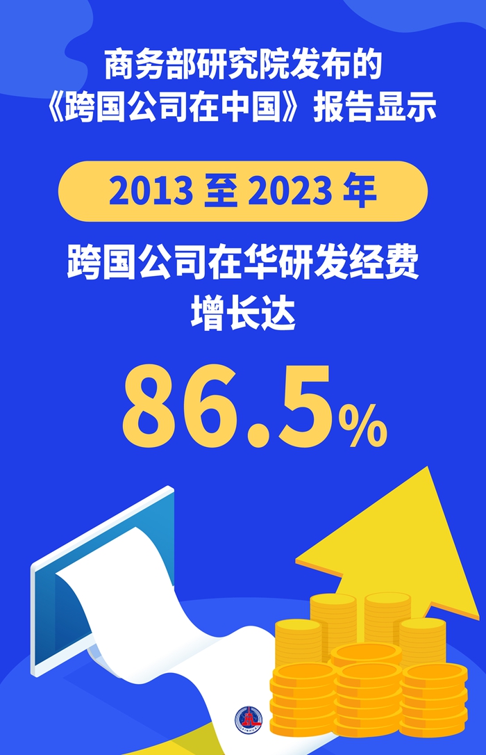 商務(wù)部研究院發(fā)布的《跨國公司在中國》報告顯示,2013至2023年,跨國公司在華研發(fā)經(jīng)費增長達(dá)86.5%。跨國公司與中國的投資合作已由“市場導(dǎo)向型”“成本導(dǎo)向型”延伸至“創(chuàng)新驅(qū)動型”。
