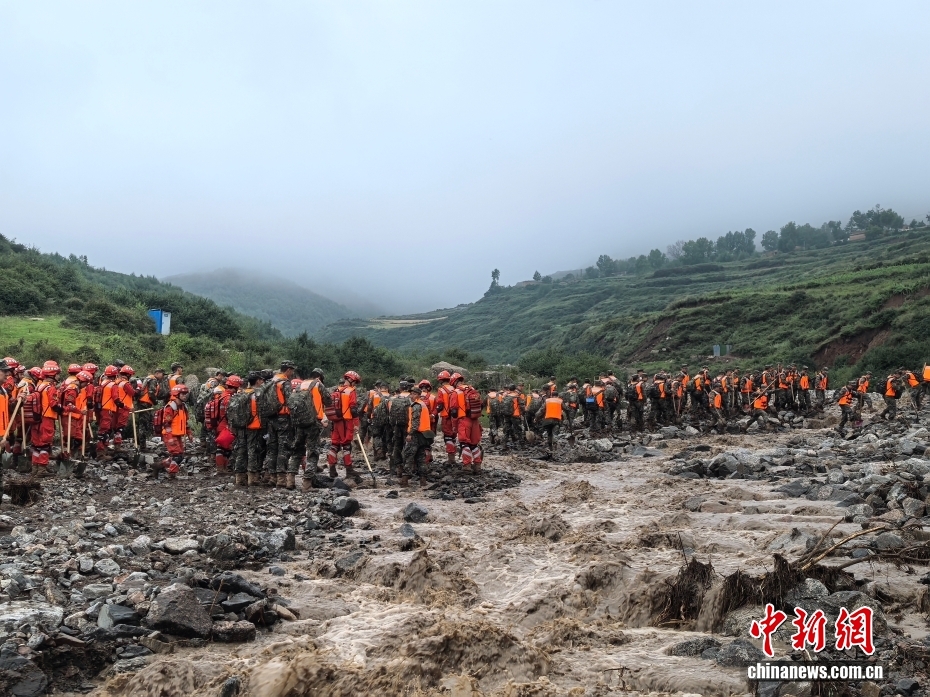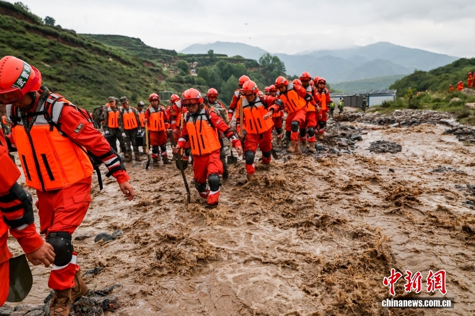 8月8日,武警甘肅總隊(duì)機(jī)動(dòng)支隊(duì)官兵挺進(jìn)災(zāi)區(qū)甘肅省蘭州市榆中縣馬坡鄉(xiāng)舊莊溝村展開救援。劉昆 攝