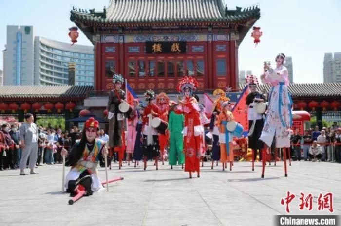 圖為“五一”假期首日,民眾在天津古文化街宮前廣場觀看民俗花會表演。魏進(jìn) 攝