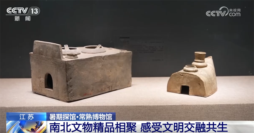 再來看這兩件展品,它們都是灰陶灶,是明器的一種,而且都是一孔灶,但是出土于北方和南方的灰陶灶明顯在風(fēng)格上是不一樣的,北方的更為方正,而南方的這個(gè)船型灶也是屬于江南地區(qū)特有的灰陶灶。