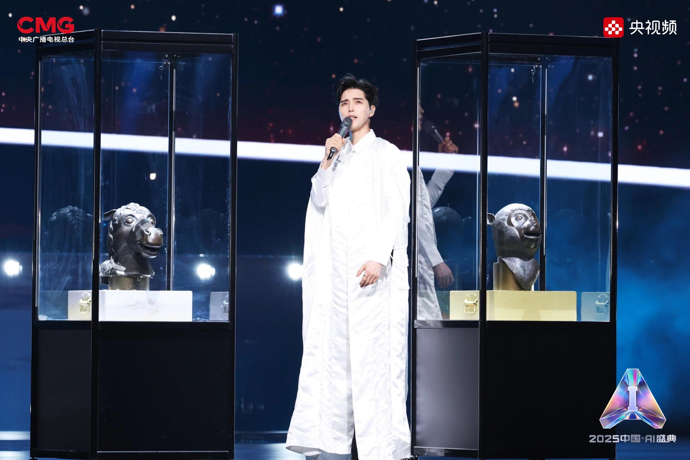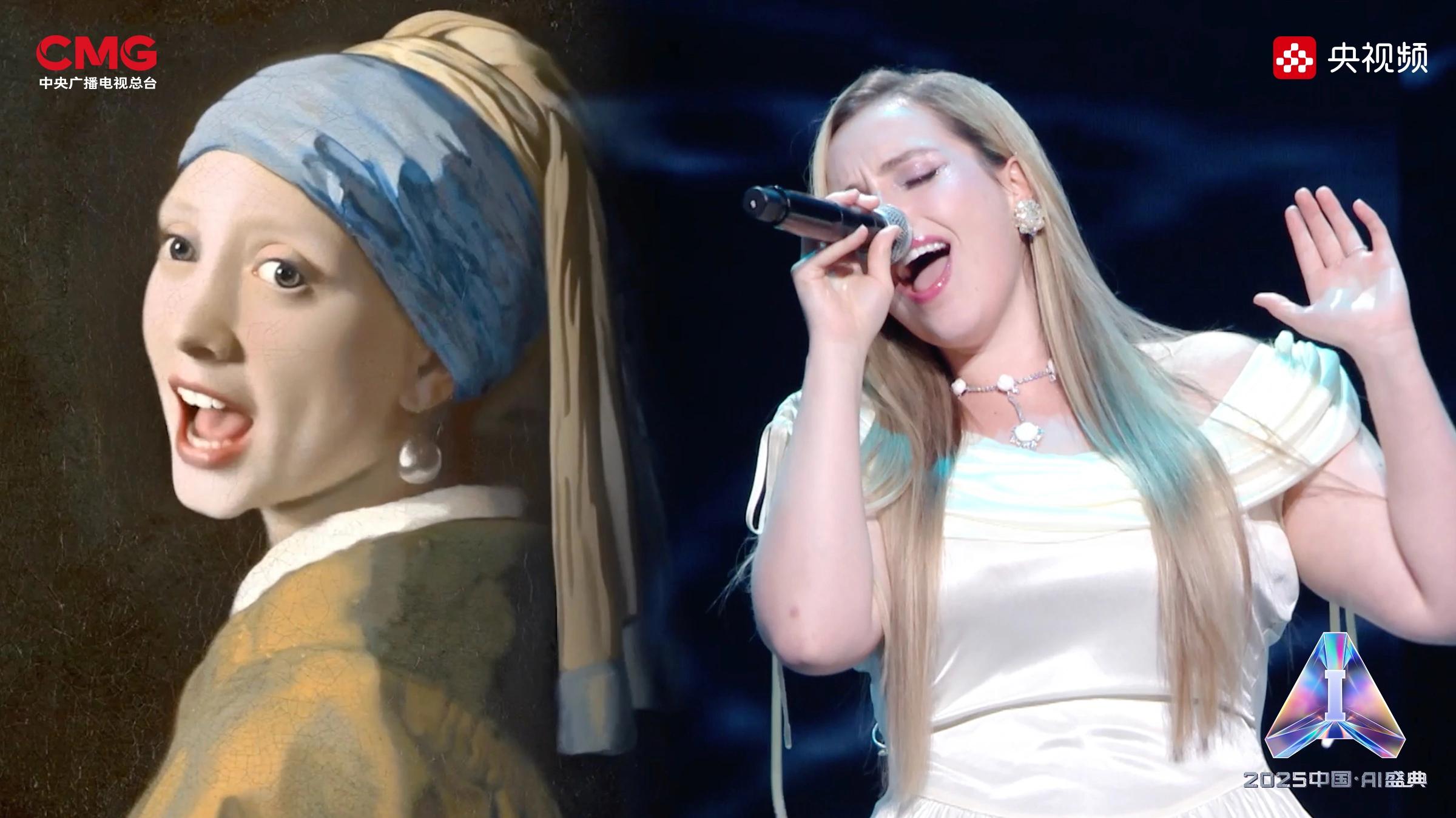 相AI相生,是藝術(shù)想象的無限延展。在AI技術(shù)的賦能下,沉睡的文物重獲新生:圓明園“十二獸首”(復(fù)制品)聚首盛典舞臺,他們化身十二樂師與歌手阿云嘎共同演繹《浮光·十二獸首歸來》,向世界展現(xiàn)東方文化藝術(shù)的魅力;《戴珍珠耳環(huán)的少女》在MiniMax海螺(Hailuo02)視頻模型的驅(qū)動下翩然起舞,與歌手Grace Kinstler隔空對唱《This Is Me》;虛擬偶像“星瞳”與歌手黃齡突破次元壁,浪漫演繹金曲《玫瑰玫瑰我愛你》;根據(jù)歌手張英席、石倚潔、蔡程昱照片生成的數(shù)字人將與“本尊”同臺獻(xiàn)唱,以中、英、意等語言詮釋經(jīng)典歌劇歌曲《今夜無人入眠》;AIGC技術(shù)更讓兵馬俑開啟環(huán)球之旅,在東西方文明的對話中完成文化使者的使命。