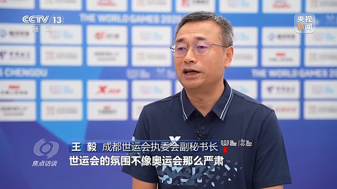 成都世運(yùn)會(huì)執(zhí)委會(huì)副秘書長 王毅:世運(yùn)會(huì)聚焦的點(diǎn)主要是非奧比賽項(xiàng)目,世運(yùn)會(huì)的氛圍不像奧運(yùn)會(huì)那么嚴(yán)肅,既有競技體育的對抗性,也強(qiáng)調(diào)趣味性和參與感,這是一個(gè)融合了傳統(tǒng)與現(xiàn)代的體育嘉年華。