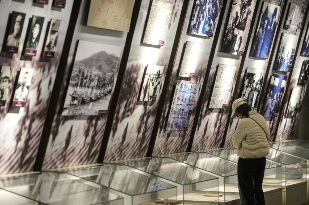 參觀(guān)者在遼沈戰(zhàn)役紀(jì)念館內(nèi)參觀(guān)(4月1日攝)。遼沈戰(zhàn)役紀(jì)念館收藏了穆青同志采寫(xiě)的《東北抗日聯(lián)軍斗爭(zhēng)史略》。新華社記者潘昱龍攝