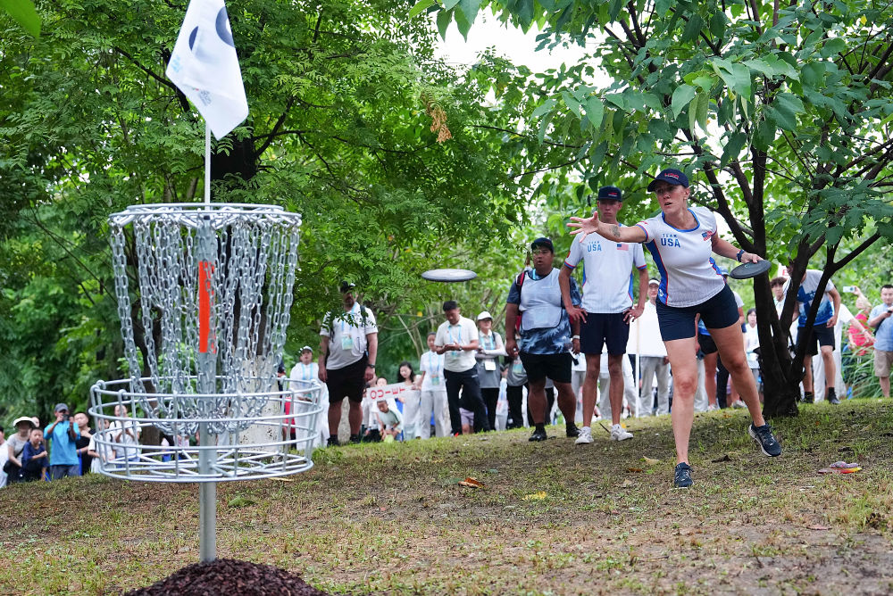 擲準(zhǔn)飛盤比賽在高新區(qū)桂溪生態(tài)公園舉行,觀眾既可登上主看臺(tái)近距離觀賽,也能在公園周邊空地的指定區(qū)域自由觀賽。奧地利選手納拉特很享受比賽過程,“我喜歡這個(gè)場(chǎng)地,有草地、有樹木、有湖泊,滿眼都是綠色”。