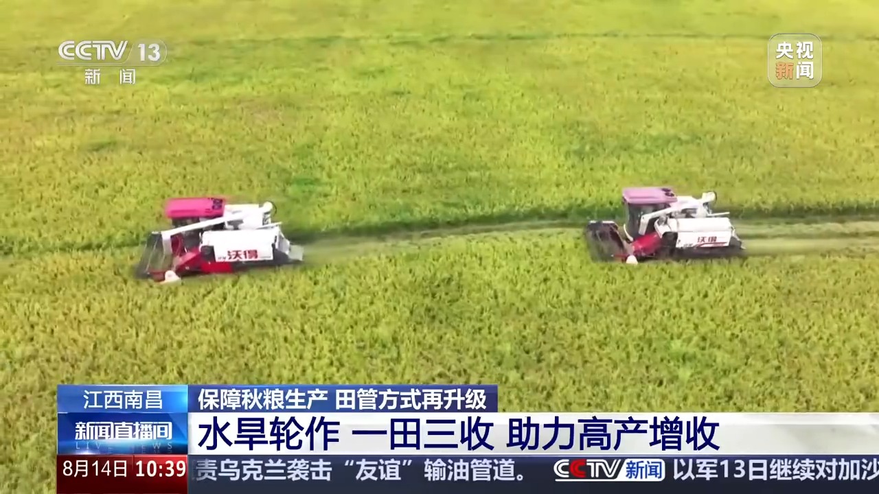 在江西南昌聯(lián)圩鎮(zhèn),一茬茬飽滿的稻穗被迅速收割、脫粒,裝入運(yùn)輸車輛。而在收割機(jī)作業(yè)的田塊旁,翻耕起壟機(jī)正加緊作業(yè),農(nóng)戶們忙著清溝除雜、整理田地,為播種優(yōu)質(zhì)高產(chǎn)大豆做足準(zhǔn)備。今年當(dāng)?shù)夭捎?strong>水旱輪作、一田三收的種植方式,春季種水稻,初秋收完水稻后搶種大豆,秋末大豆收獲后緊接著種植耐寒蔬菜或油菜,三季作物茬口緊密銜接,全年無(wú)閑田。同時(shí),通過(guò)推廣良種、測(cè)土配方施肥等技術(shù),確保每種作物都能優(yōu)質(zhì)高產(chǎn)。