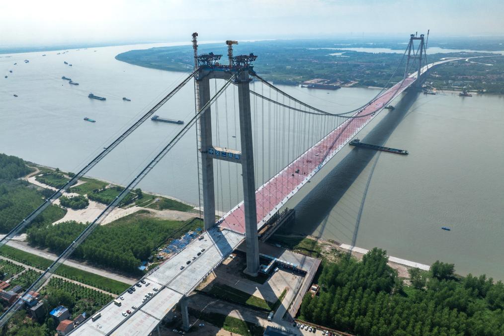 7月26日拍攝的合龍后的雙柳長(zhǎng)江大橋(無(wú)人機(jī)照片)。新華社記者 肖藝九 攝