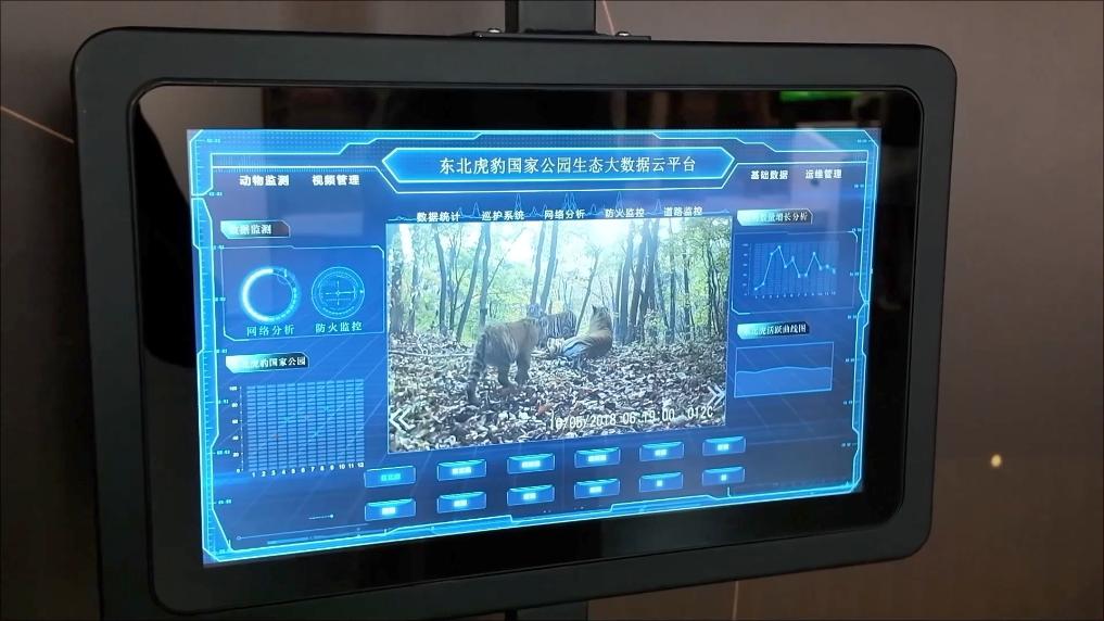 在吉林省琿春東北虎豹自然科普館,東北虎豹國家公園的“天空地一體化監(jiān)測體系”通過智能紅外相機(jī)、衛(wèi)星遙感、無人機(jī)等技術(shù),回傳野生動物活動影像。