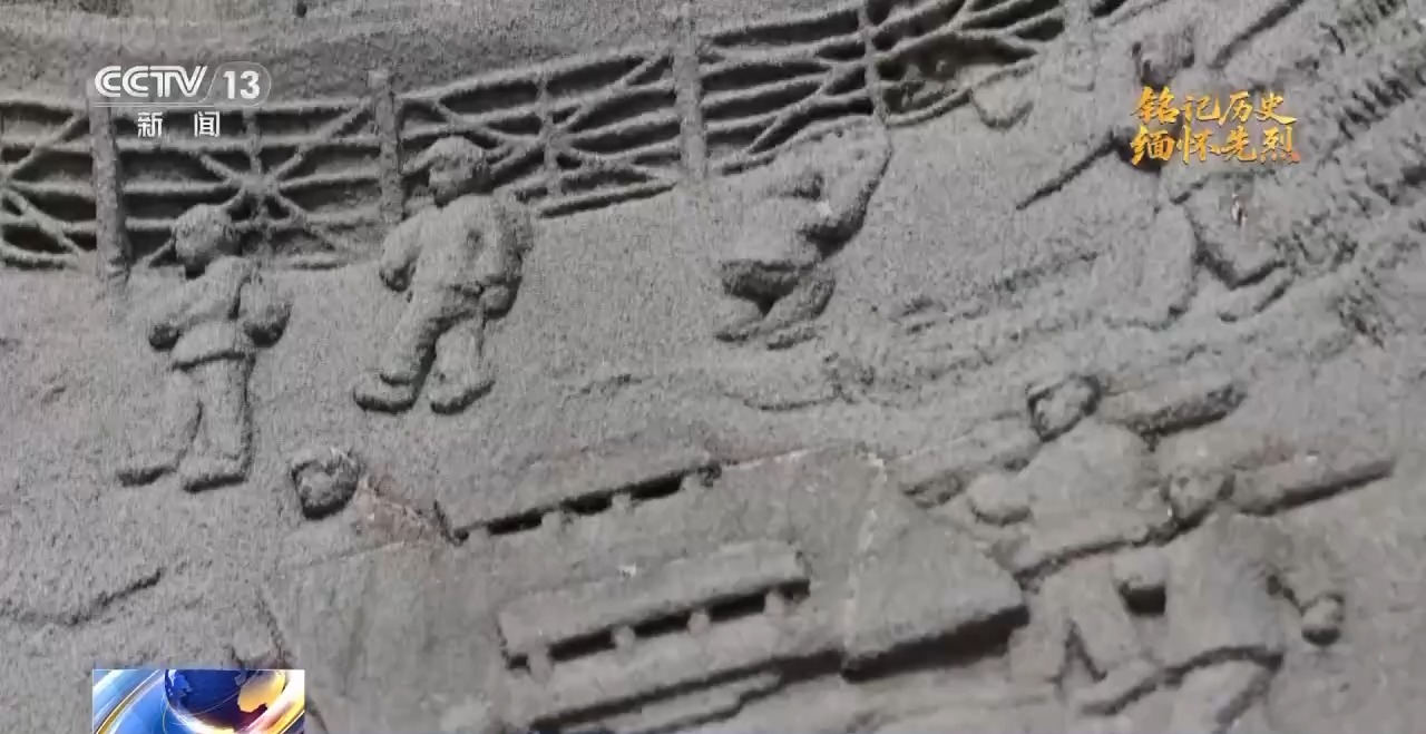 總臺(tái)記者 任秋宇:北靠山村曾是東北抗聯(lián)第六軍的重要后勤補(bǔ)給地和兵員來源地,這有個(gè)石雕畫反映出抗日戰(zhàn)爭時(shí)期軍民魚水情深的故事,這個(gè)故事叫“抬車送糧”,就發(fā)生在北靠山村。