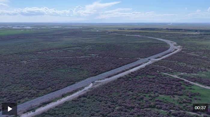 放眼望去,廣袤的戈壁灘上,一簇簇紅柳舒展著堅(jiān)韌的枝條,粉紫色的花穗鋪滿天際。在陽(yáng)光的照射下,千萬株紅柳在沙地上投下斑駁的疏影,與金黃的沙丘、湛藍(lán)的天空形成強(qiáng)烈的色彩對(duì)比,構(gòu)成一幅動(dòng)人的生態(tài)畫卷。