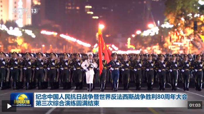 記者從中國人民抗日戰(zhàn)爭暨世界反法西斯戰(zhàn)爭勝利80周年紀念活動新聞中心獲悉,8月23日17時至8月24日5時,北京天安門地區(qū)舉行了紀念中國人民抗日戰(zhàn)爭暨世界反法西斯戰(zhàn)爭勝利80周年大會第三次綜合演練。據(jù)介紹,這是一次全流程、全要素預演,也是紀念大會最后一次綜合演練,包括紀念大會儀式(含閱兵)、轉(zhuǎn)場、觀眾組織及應急處置等各項內(nèi)容,重點檢驗了各流程、各環(huán)節(jié)的銜接配合,為正式活動的成功舉辦打下堅實基礎(chǔ)。