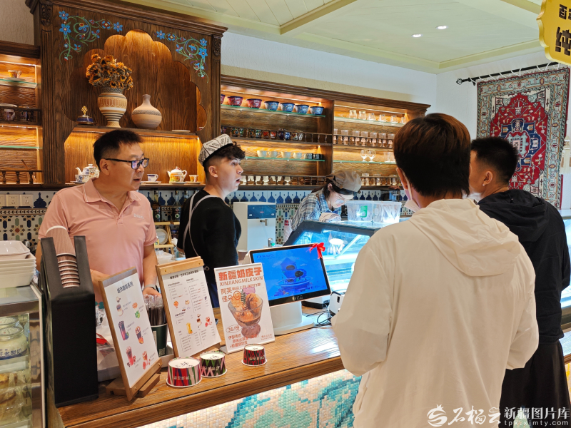 游客在冰激凌店內選購甜品。石榴云/新疆日報記者 宋海波攝