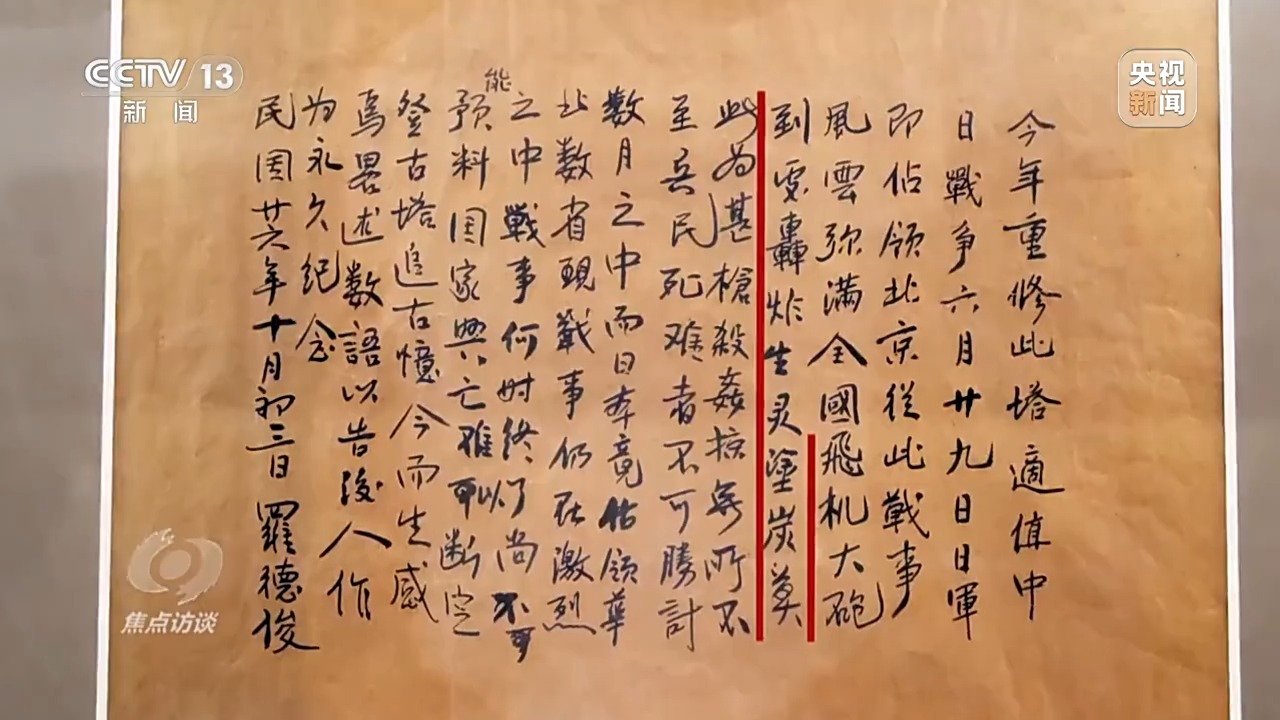今年是中國人民抗日戰(zhàn)爭暨世界反法西斯戰(zhàn)爭勝利80周年。在這場決定人類命運的偉大斗爭中,中國作為東方主戰(zhàn)場,以3500萬同胞傷亡的沉重代價,為世界反法西斯事業(yè)作出了不可磨滅的歷史貢獻。為銘記這段用鮮血和生命鑄就的壯麗史詩,《焦點訪談》推出特別節(jié)目“歷史照耀今天”。今天,我們首先重返1931年九一八事變的歷史現(xiàn)場,揭開中國人民14年不屈抗戰(zhàn)的序幕。