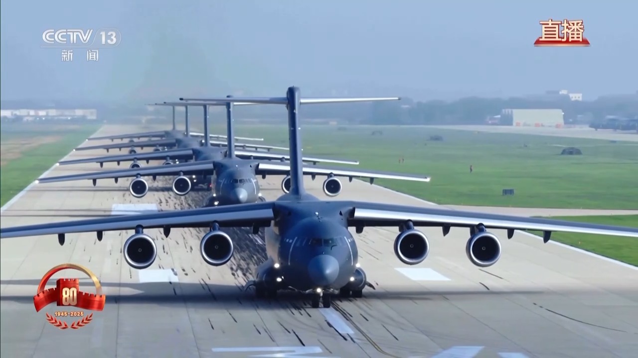 空中梯隊(duì)的戰(zhàn)機(jī)從首都周邊多個(gè)機(jī)場(chǎng)陸續(xù)起飛,將飛越天安門(mén)廣場(chǎng),光榮地接受檢閱。