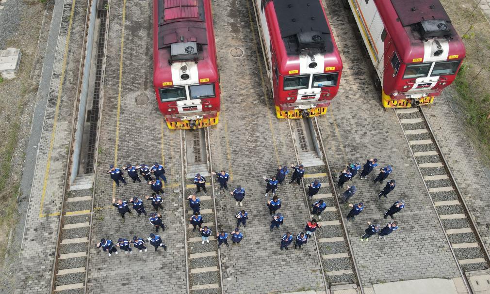 2025年8月19日,在肯尼亞內(nèi)羅畢非洲之星鐵路運(yùn)營(yíng)有限責(zé)任公司機(jī)務(wù)運(yùn)轉(zhuǎn)整備場(chǎng),中肯兩國(guó)鐵路工作者在機(jī)車前站列并組成“3000”字樣,以紀(jì)念蒙內(nèi)鐵路實(shí)現(xiàn)安全運(yùn)營(yíng)3000天(無(wú)人機(jī)照片)。新華社記者 楊光 攝
