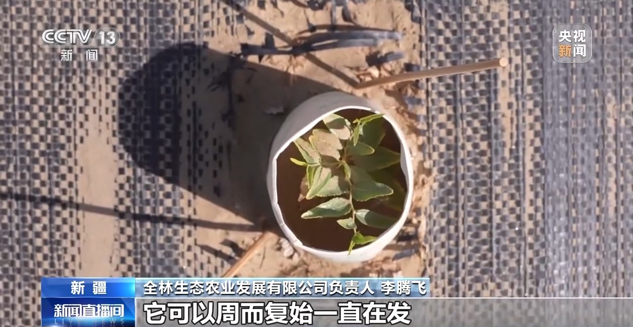 全林生態(tài)農(nóng)業(yè)發(fā)展有限公司負(fù)責(zé)人 李騰飛:沙塵暴這種摧殘之下,它可以周而復(fù)始一直在發(fā),只要它的根系不死,所以說(shuō)我們稱它為“苗堅(jiān)強(qiáng)”。