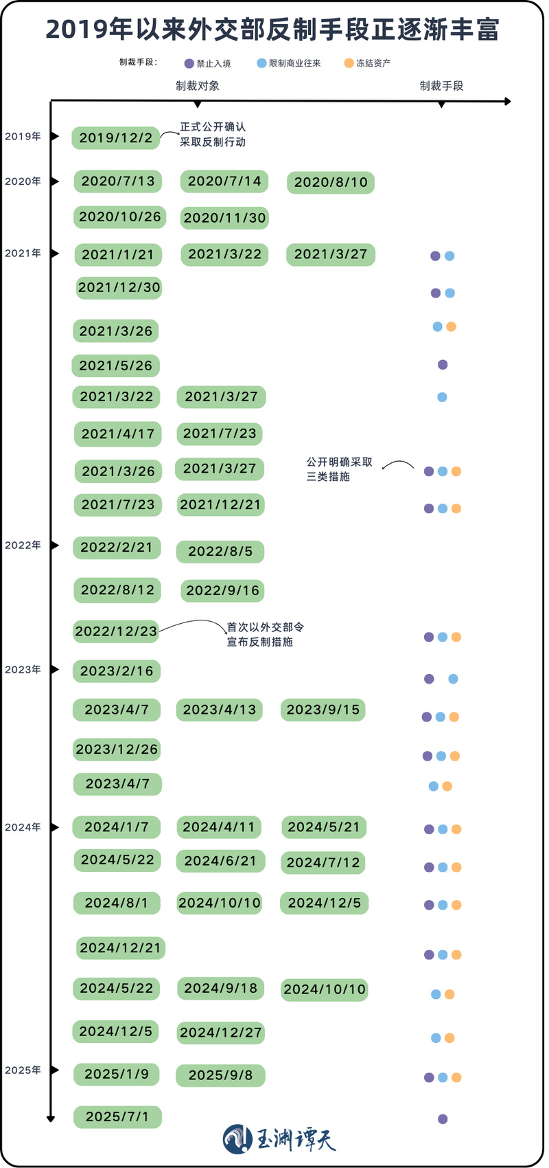 當時,外交部開始通過發(fā)言人表態(tài)宣布制裁,正式公開確認采取反制行動。2019到2020年基本如此。
