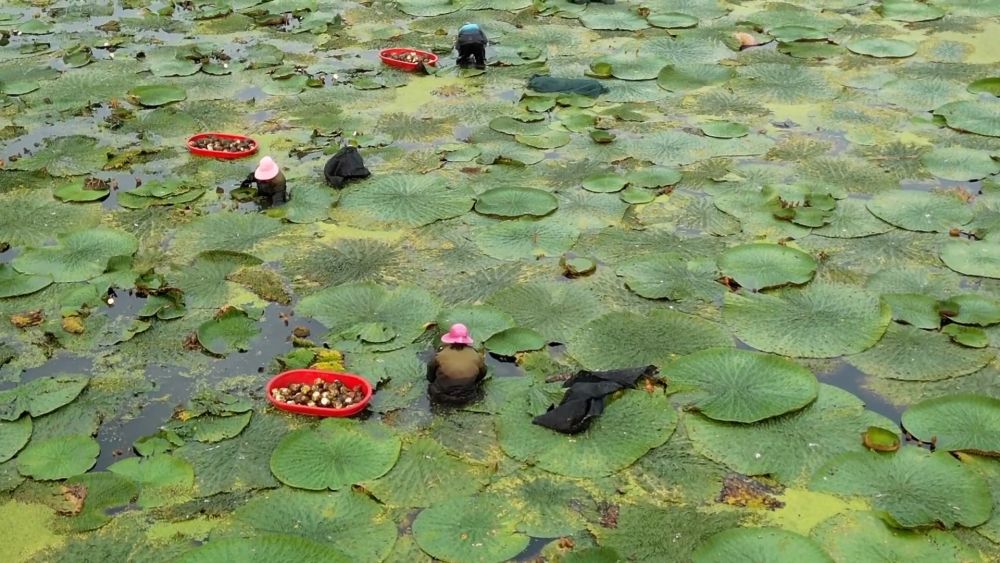 眼下,江蘇省泰州市姜堰區(qū)顧高鎮(zhèn)申俞村芡實進入成熟期,種植戶正抓緊采摘成熟的頭茬芡實。
