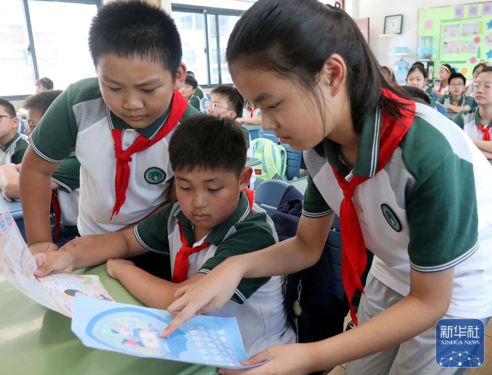 9月15日,江蘇省蘇州市金閶實(shí)驗(yàn)小學(xué)校學(xué)生在學(xué)習(xí)網(wǎng)絡(luò)安全知識(shí)。新華社發(fā)(杭興微攝)
