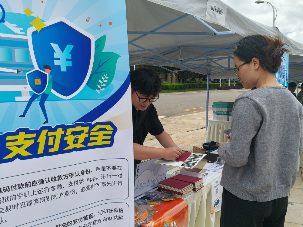 校園的露天廣場(chǎng)上還安排有網(wǎng)絡(luò)安全知識(shí)趣味問(wèn)答活動(dòng),吸引學(xué)生參與,讓他們?cè)谳p松愉快的氛圍中鞏固了反詐知識(shí)。還有工作人員向路過(guò)的學(xué)生發(fā)放反詐宣傳手冊(cè)。