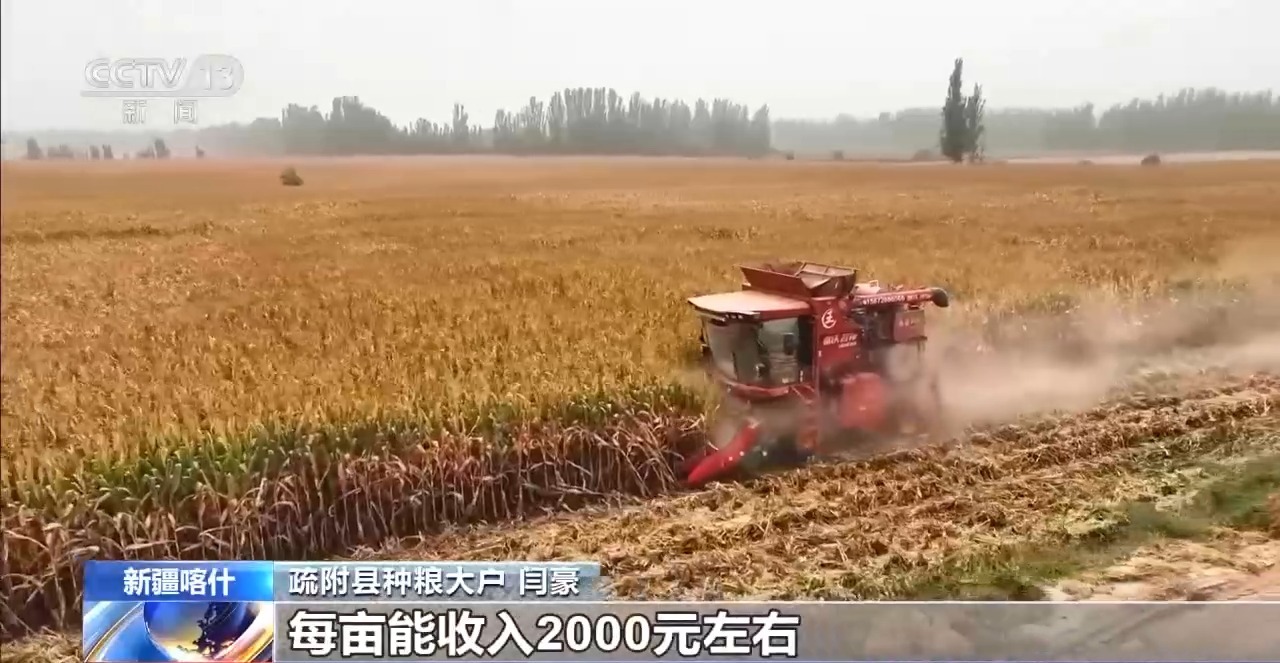 疏附縣種糧大戶 閆豪:我們引進了新品種,又聽從疏附縣有關(guān)部門,農(nóng)業(yè)部門指導(dǎo),每畝能收入2000元左右。