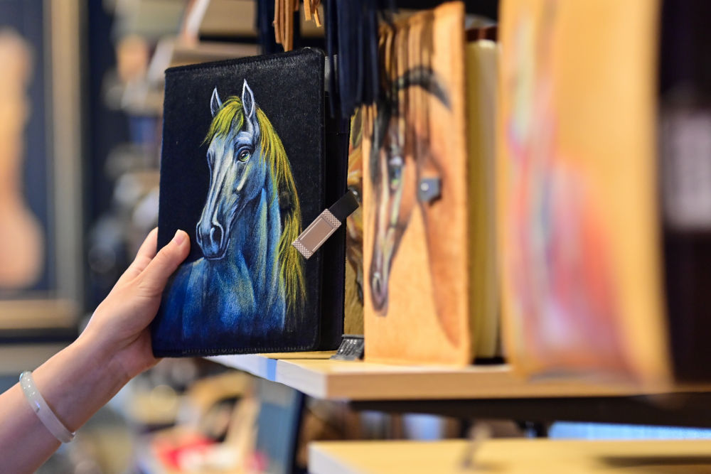 “伊犁是‘天馬之鄉(xiāng)’,我們?cè)谄っ惑w的馬皮上進(jìn)行手工繪畫,每幅圖案都是獨(dú)一無二的,讓非遺與旅游深度融合?!钡觊L(zhǎng)茹柯耶·艾散介紹,店鋪還開發(fā)出馬毛筆記本、首飾等文創(chuàng)衍生品,深受年輕人喜愛。
