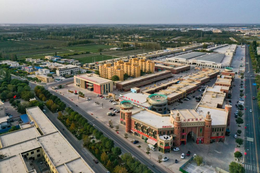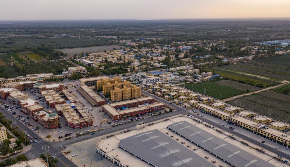 這是9月18日拍攝的新疆巴音郭楞蒙古自治州尉犁縣達(dá)西村(無人機(jī)照片)。