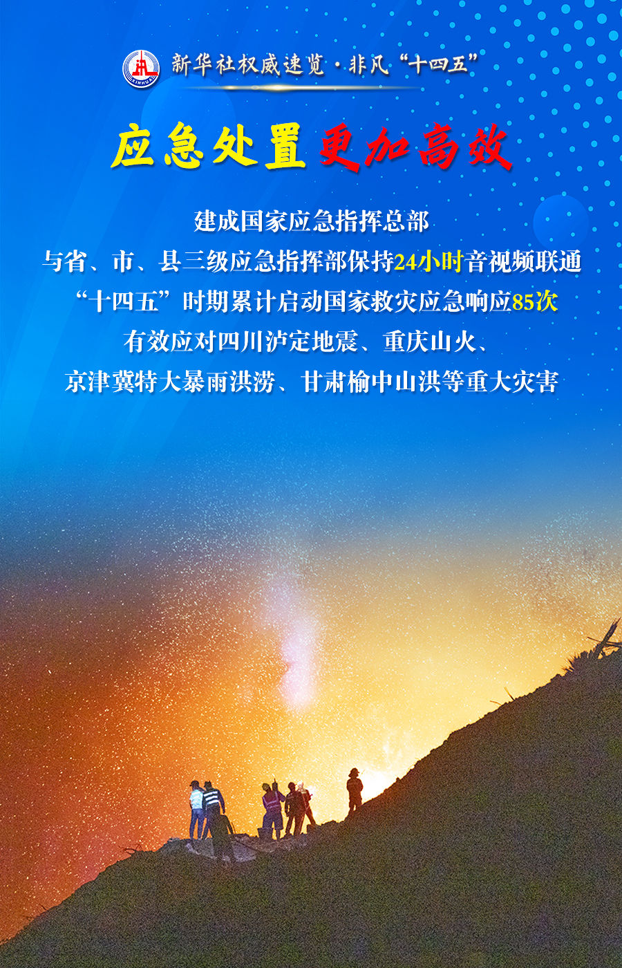 24日,國新辦舉行“高質量完成‘十四五’規(guī)劃”發(fā)布會,應急管理部部長王祥喜說,“十四五”時期,應急管理走過了一段很不平凡的里程,打贏了一場又一場搶險救災的大仗硬仗,推動應急管理體系和能力建設取得突破性進展和歷史性成就。跟隨海報,一起了解。
