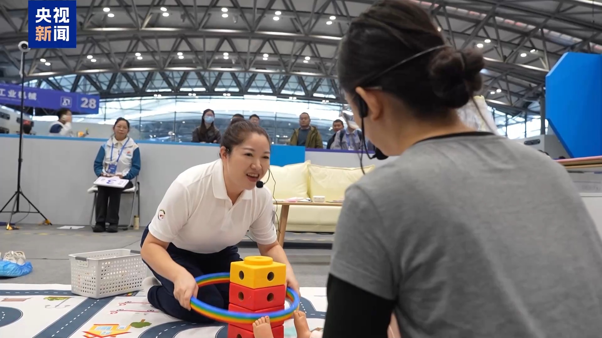 賽場(chǎng)上,一個(gè)個(gè)格子間按照真實(shí)居家場(chǎng)景布置,選手們按照流程,完成從上門(mén)拜訪、嬰兒互動(dòng)、游戲設(shè)計(jì)、家長(zhǎng)交流等系列服務(wù)工作。記者注意到,這次比賽創(chuàng)新引入會(huì)哭鬧的智能化模擬嬰兒,選手抱姿不對(duì)、饑餓都會(huì)有數(shù)據(jù)反饋,考驗(yàn)選手的回應(yīng)性照顧能力,同時(shí)邀請(qǐng)了一些嬰幼兒家長(zhǎng)進(jìn)行配合互動(dòng)。