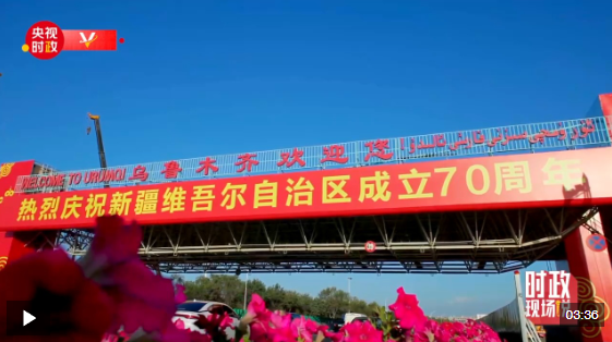 中共中央總書記、國家主席、中央軍委主席習近平率中央代表團23日下午乘專機抵達烏魯木齊,出席新疆維吾爾自治區(qū)成立70周年慶祝活動。14時20分許,習近平乘坐的專機在天山國際機場降落,等候在停機坪的新疆各族各界群眾熱烈歡呼。習近平走下舷梯時,少先隊員獻上鮮花。各族群眾代表身著民族服飾,載歌載舞,歡迎總書記的到來,表達對總書記的衷心祝福。