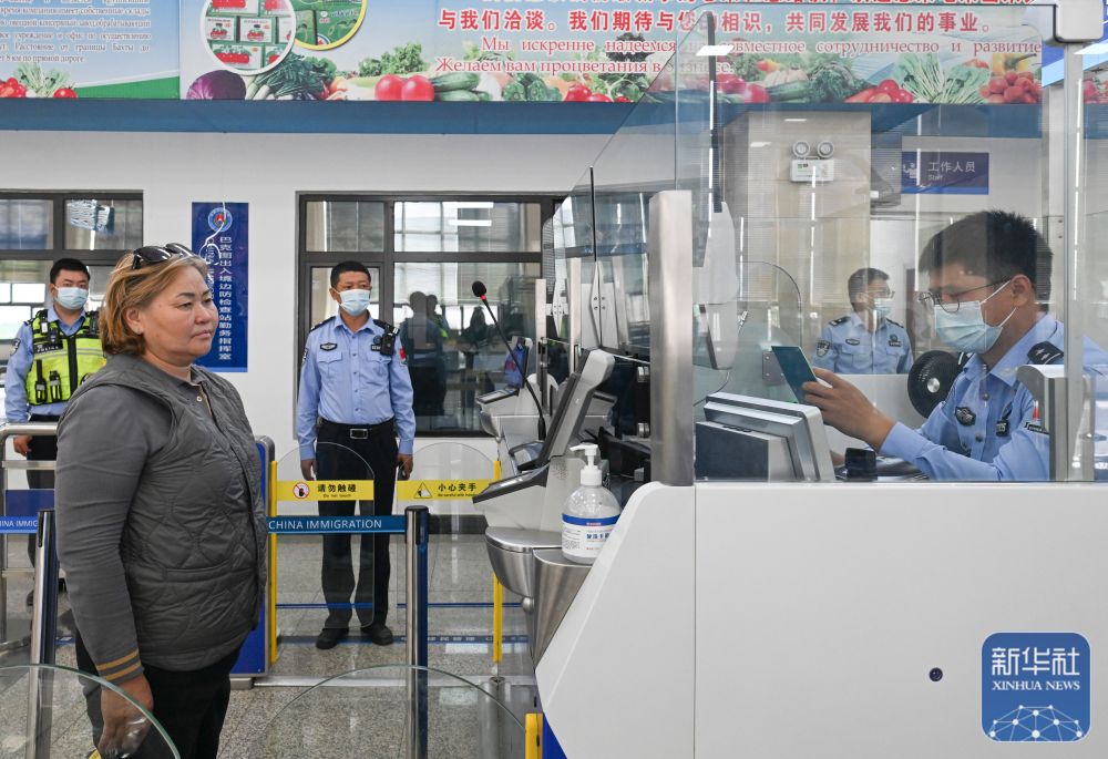 ↑9月17日,巴克圖出入境邊防檢查站的移民管理警察在為來自哈薩克斯坦的旅客辦理入境手續(xù)。