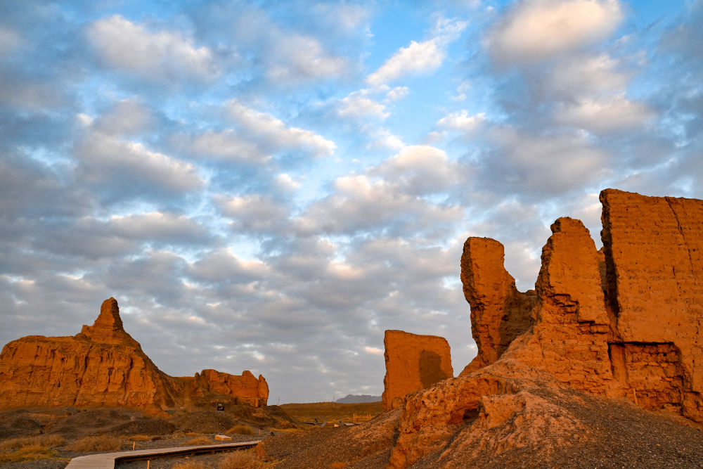 “克孜爾尕哈”意為“紅色哨卡”。夕陽(yáng)下,這座漢代軍事設(shè)施的夯土墻體被映照得棱角分明,泛著淡淡的金紅色?!罢驹谶@里,仿佛看到了當(dāng)年的烽火傳訊?!币幻慰透锌卣f(shuō)。