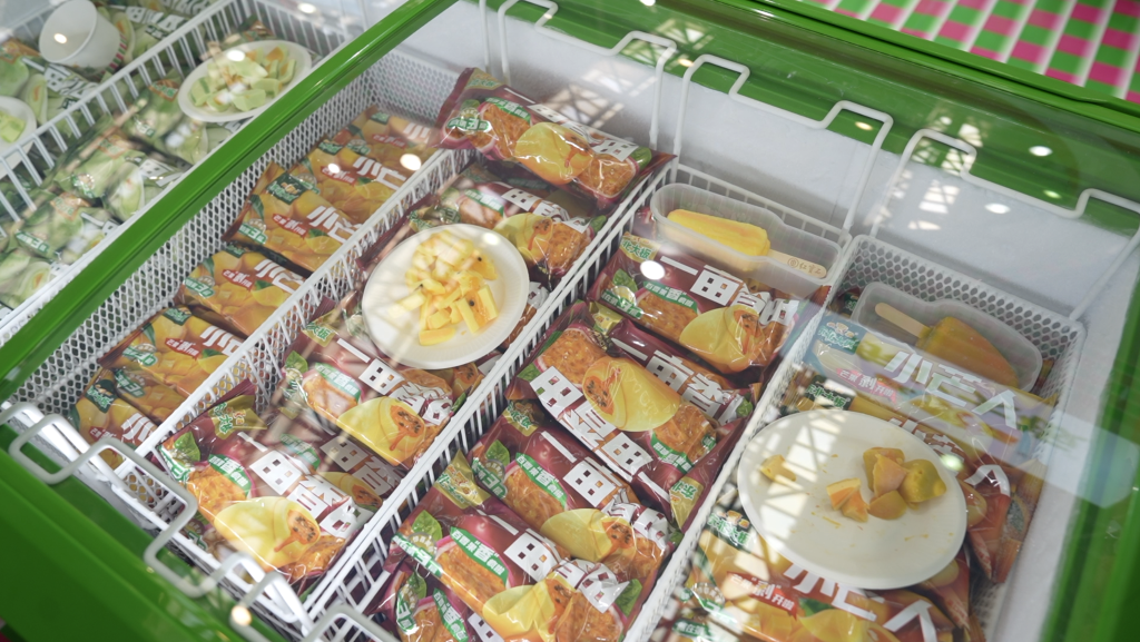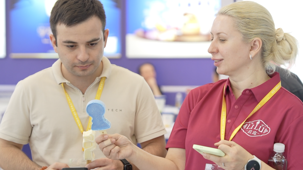 在東北大板品牌展區(qū),蜜瓜、芒果、百香果造型的水果味冰淇淋吸引了眾多客商品嘗,該系列產(chǎn)品遠(yuǎn)銷新西蘭、加拿大、馬來(lái)西亞、新加坡等國(guó)家和地區(qū)。
