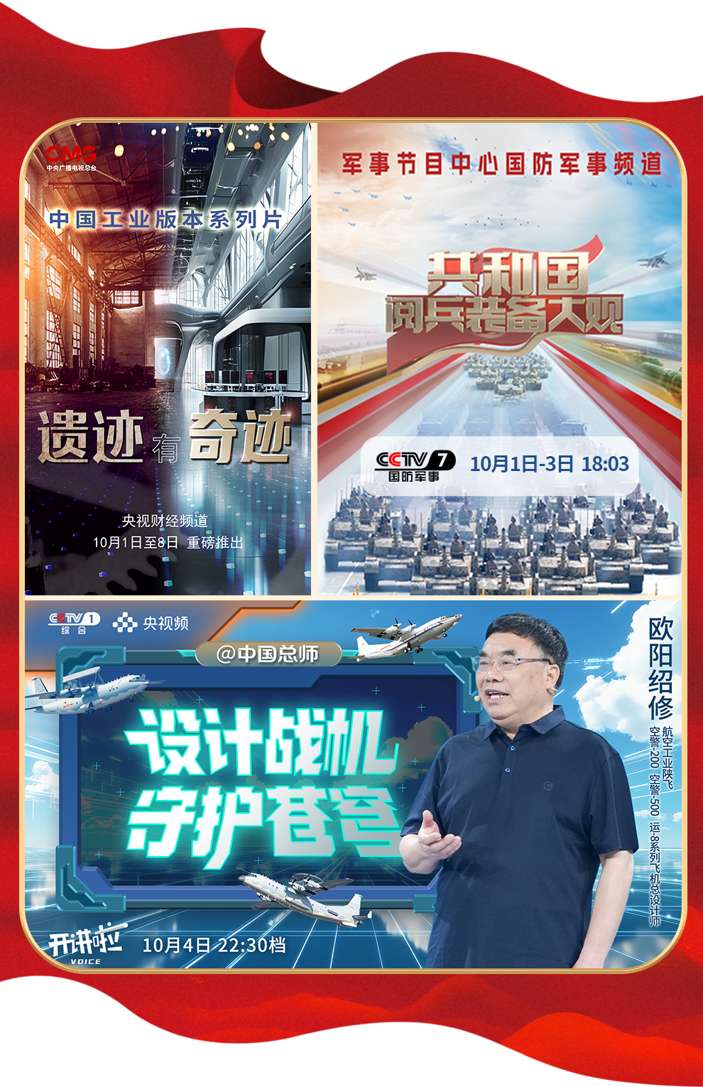 紀(jì)錄片《遺跡有奇跡》,深入探訪八個不同行業(yè)的工業(yè)遺址,展現(xiàn)中國工業(yè)發(fā)展的輝煌歷程。九三閱兵現(xiàn)場,新型察打一體無人機(jī)、空警-500預(yù)警機(jī)等硬核裝備令人振奮,《開講啦》“@中國總師”解讀中國軍工硬核實(shí)力,系列節(jié)目《共和國閱兵裝備大觀》帶你在鋼鐵洪流的轟鳴聲中見證軍工裝備的迭代升級,展示新時代中國科技創(chuàng)新帶來的大國力量!向前進(jìn),向前進(jìn),我們有信心、有底氣!