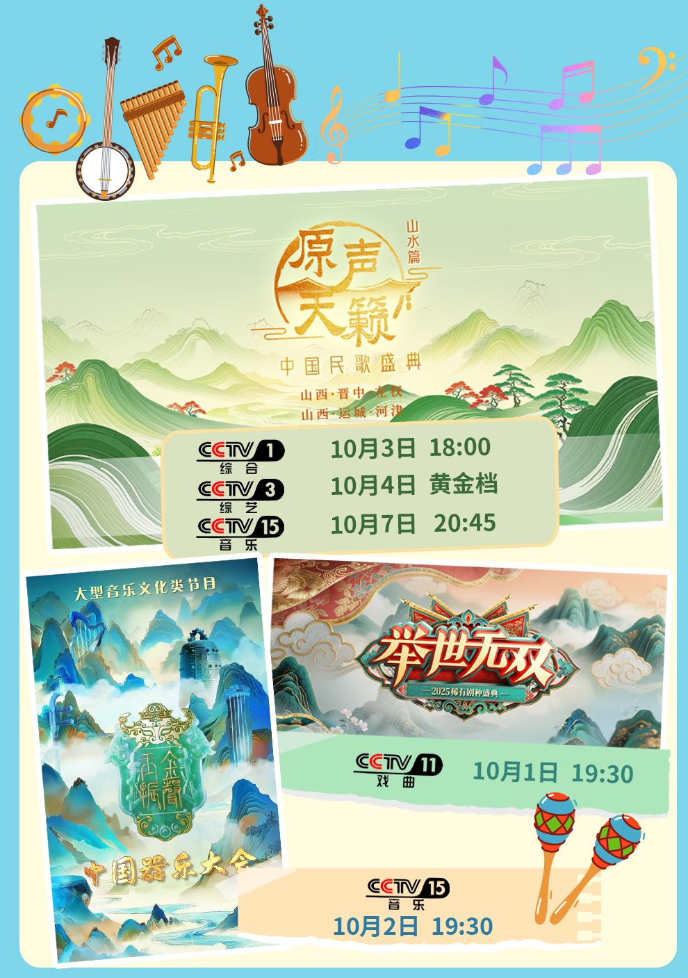 文藝節(jié)目,出新出彩!輕體量小鎮(zhèn)音樂會、稻田音樂會、河灘音樂會,《原聲天籟-中國民歌盛典》用民歌描繪山水間幸福畫卷。《金聲玉振——中國器樂大會》將賈湖骨笛、箜篌等古樂器與當(dāng)代編曲結(jié)合,奇妙組合帶來全新聽覺體驗(yàn)。《舉世無雙 2025稀有劇種盛典》匯集雁北耍孩兒、湖劇、阿宮腔等三十余個稀有劇種,盡展中華戲曲百花園獨(dú)特風(fēng)采。