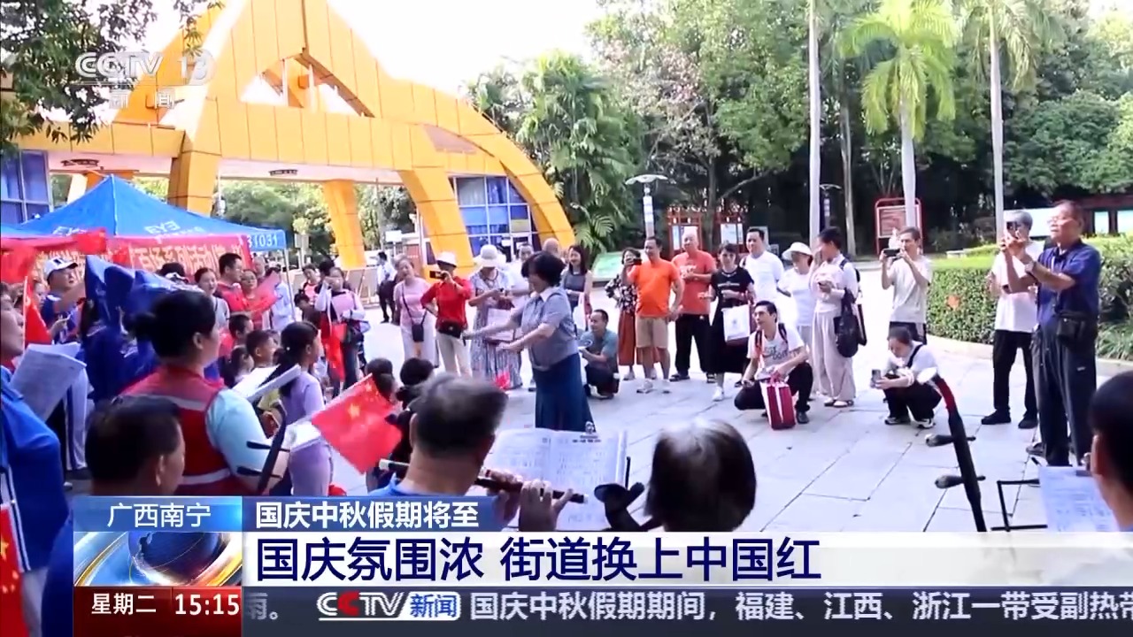 國(guó)慶節(jié)臨近,廣西、江蘇等地在城市道路、景區(qū)等區(qū)域掛上了國(guó)旗,營(yíng)造出祥和的國(guó)慶氛圍。