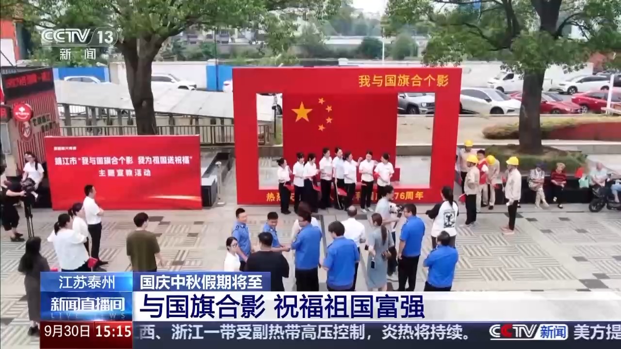為迎接國(guó)慶,這幾天江蘇泰州的主要道路、社區(qū)廣場(chǎng)上都掛滿了國(guó)旗。當(dāng)?shù)剡€啟動(dòng)了“我與國(guó)旗合個(gè)影”的打卡活動(dòng),吸引了許多市民游客參與。