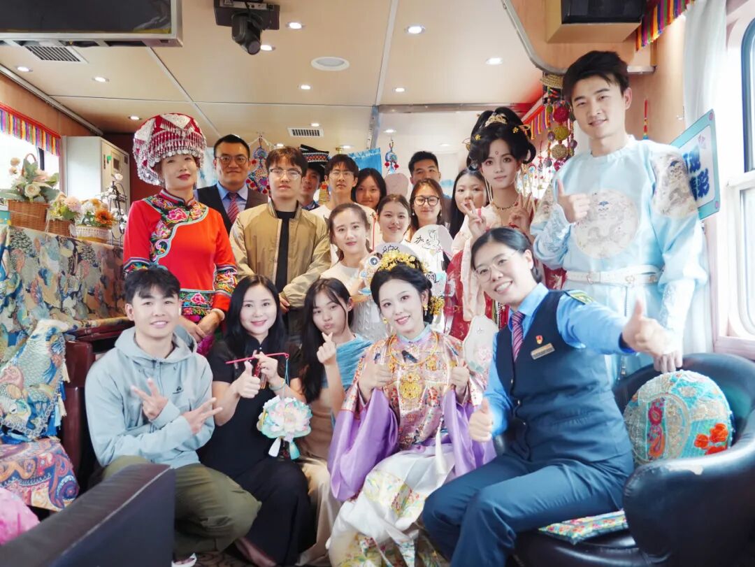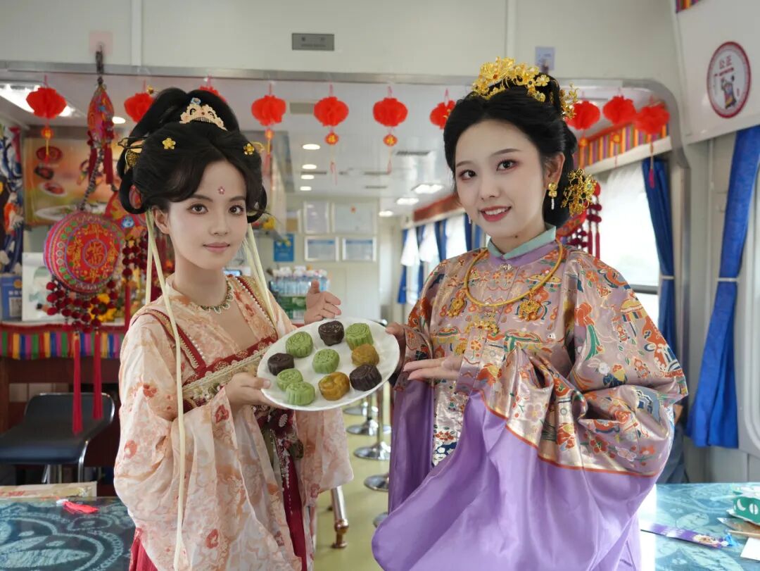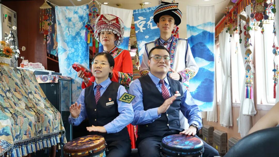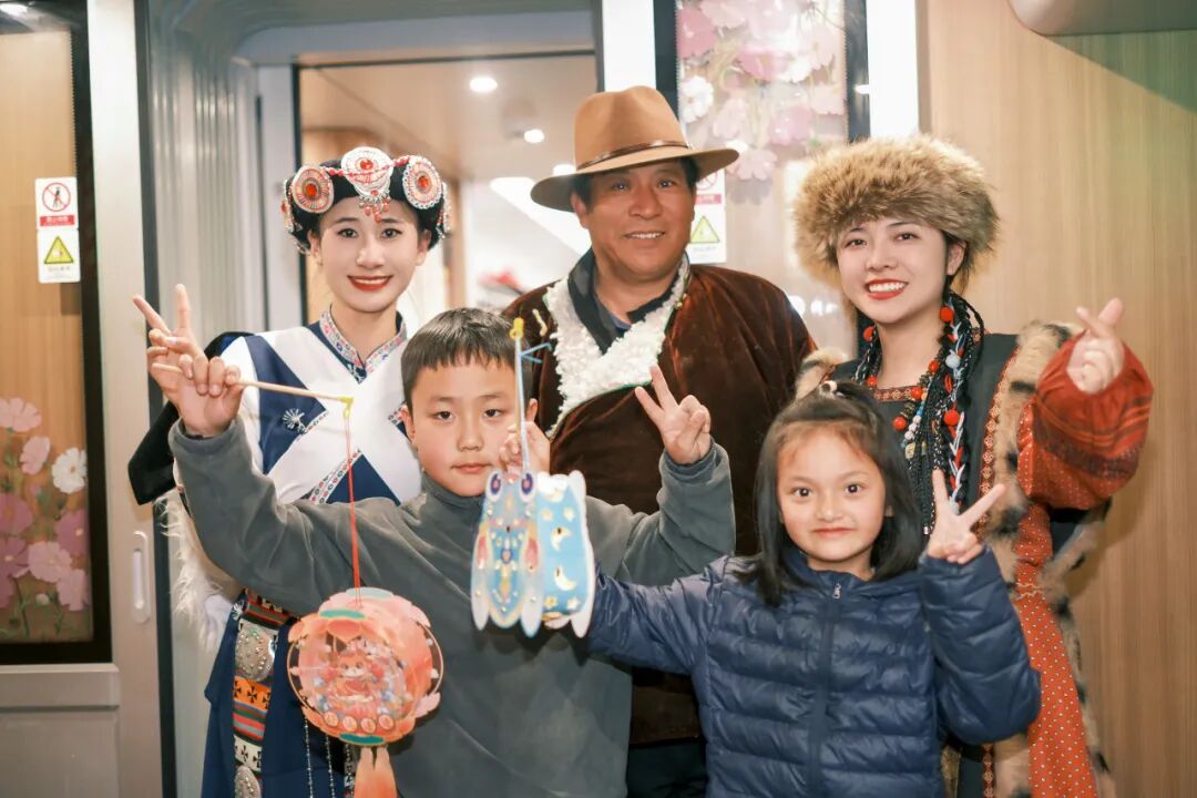“旅客朋友們,歡迎乘坐本趟列車,中秋佳節(jié)將至,我們在2號餐車準(zhǔn)備了特色活動(dòng),誠邀大家共慶佳節(jié)!”列車長李文雯的聲音通過廣播傳遍車廂。隨即《納西三部曲》旋律響起——身著絢麗民族服飾的列車員們,拉著周圍旅客一同跳起納西族舞蹈,歡快的節(jié)奏瞬間點(diǎn)燃車廂氣氛。