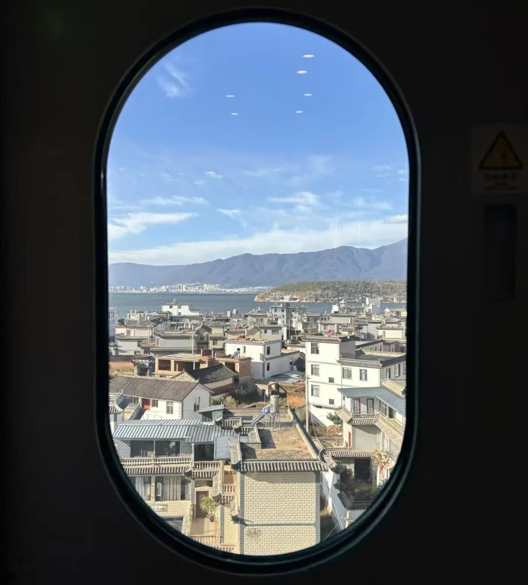 列車載著風(fēng)穿行,車窗恰似畫框,將大理的詩意牢牢框住。澄澈藍(lán)天如被水洗過的藍(lán)綢,洱海似一汪碎了的藍(lán)寶石,在日光下漾著粼粼波光,遠(yuǎn)處青山如黛,靜默相依。近處,白墻黛瓦的村落像從時(shí)光深處走來的精靈,挨挨擠擠。屋頂?shù)木€條或平直或微翹,似在無聲訴說著歲月故事。隔著車窗,也能感受到“詩和遠(yuǎn)方”,真叫人沉醉在這旅途中的“大理藍(lán)”里。(作者:李婭姣)