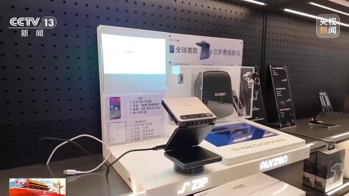 像這家店內(nèi)展示的三折疊投影儀、無弦吉他、教育機(jī)器人等多門類新品,覆蓋了工作、生活、娛樂等全場(chǎng)景。記者發(fā)現(xiàn),店內(nèi)推出的大量AI新品,不僅功能更強(qiáng)大,操作起來也更加簡(jiǎn)單,讓老百姓能夠更方便地使用人工智能技術(shù)。