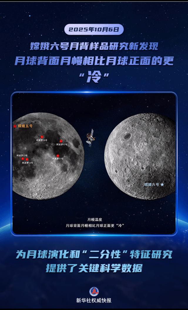 10月6日,國(guó)家航天局和國(guó)家原子能機(jī)構(gòu)聯(lián)合發(fā)布嫦娥六號(hào)月球背面樣品研究最新成果。我國(guó)科學(xué)家首次基于嫦娥六號(hào)月球背面樣品(月壤)研究發(fā)現(xiàn),月球背面月幔相比月球正面的更“冷”,進(jìn)一步深化了人類(lèi)對(duì)月球“二分性”現(xiàn)象的認(rèn)識(shí),為月球正面與月球背面的月幔溫度差異提供了巖石學(xué)與地球化學(xué)等科學(xué)依據(jù),為月球演化和“二分性”特征研究提供了科學(xué)數(shù)據(jù)。