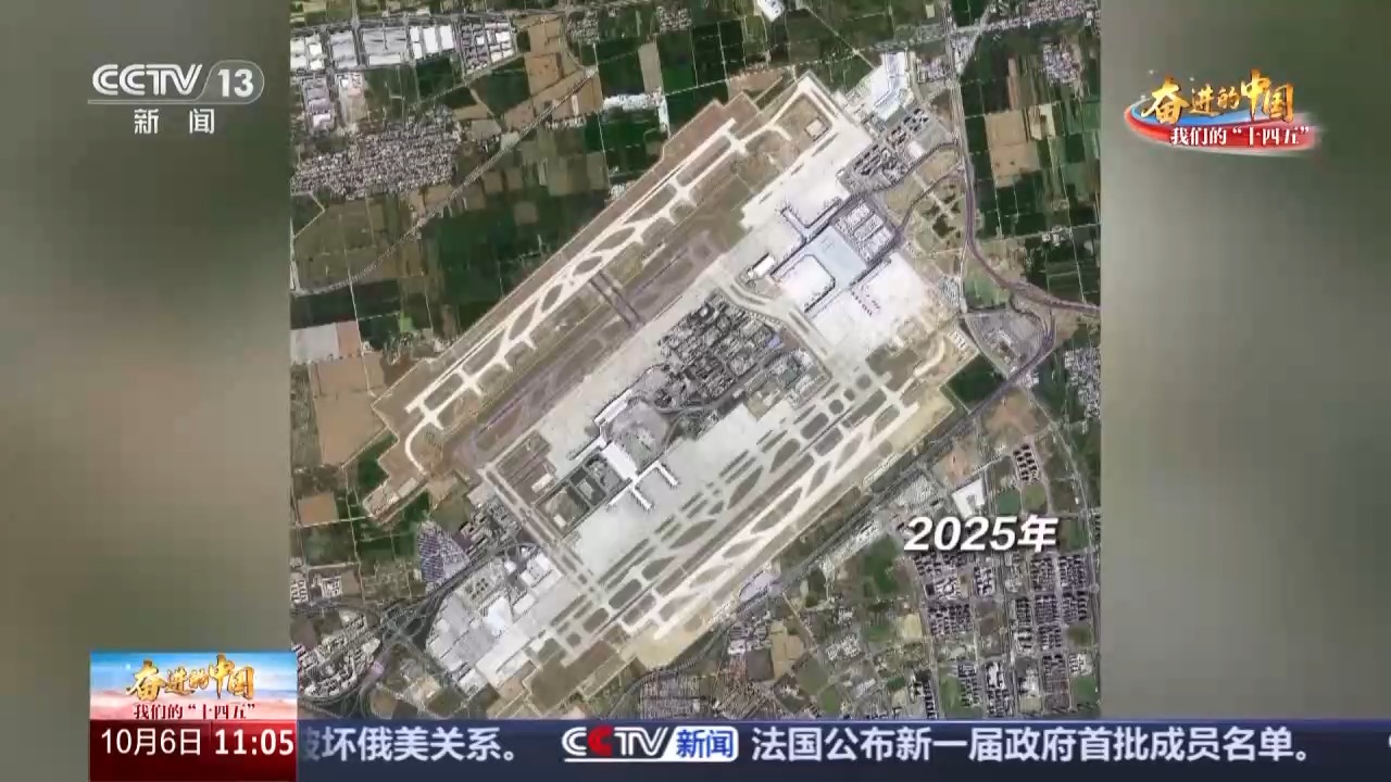 太空俯瞰,五年時光里,陜北高原上煤制乙二醇裝置將“黑煤”轉(zhuǎn)化為綠色化工產(chǎn)品;關(guān)中平原,國內(nèi)首座T5航站樓投入運營。