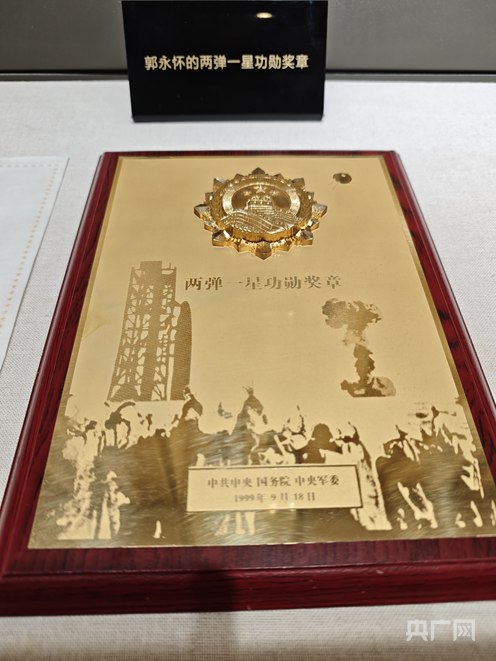 郭永懷的“兩彈一星功勛獎(jiǎng)?wù)隆睆?fù)刻品(央廣網(wǎng)記者 劉暢司晨 攝)
